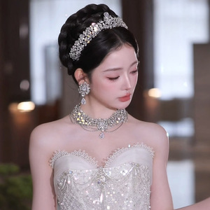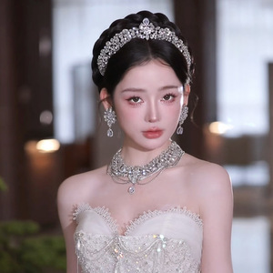 韩式简约新娘皇冠套装新款高级感大气轻奢主婚纱甜美减龄百搭王冠