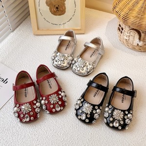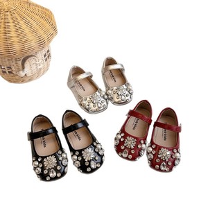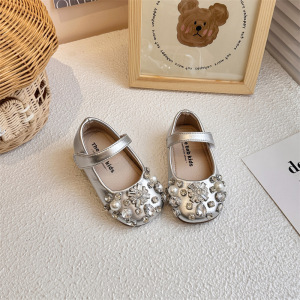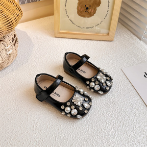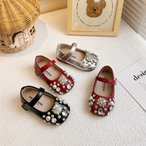 女童洋气豆豆鞋皮鞋2025秋季新款儿童鞋子小女孩公主鞋水钻单鞋潮
