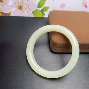 天然新疆和田玉羊脂白手镯女圆条高货玉镯母亲节礼物正品一物一证