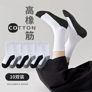 跨境批发儿童袜子春秋黑白学生袜学院纯色男女童中大童棉袜小白袜
