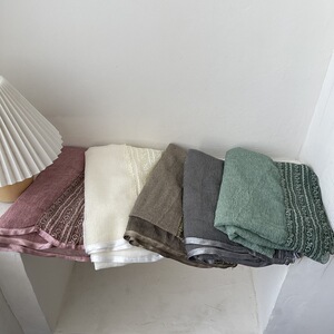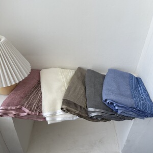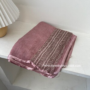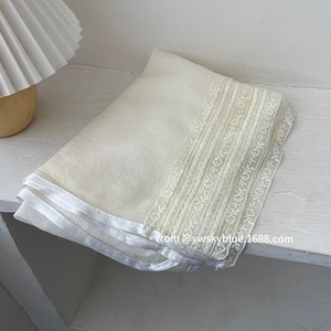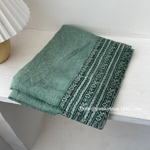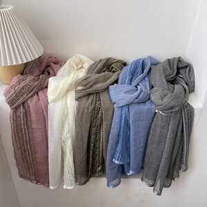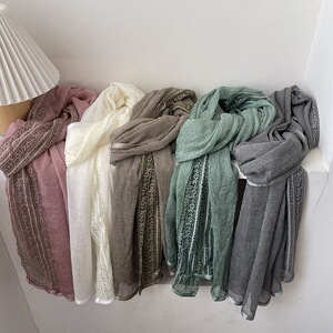 韩国小众蕾丝拼接文艺百搭纯色长款棉麻围巾女披肩韩版旅游薄纱巾