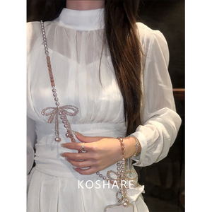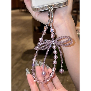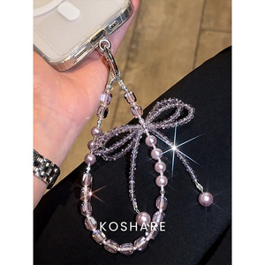 紫霞仙子蝴蝶结斜挎可背重工手机链条轻奢高级感挂脖手拎水晶挂链