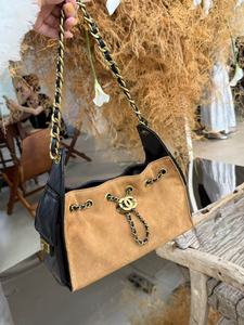 2025新款磨砂皮单肩腋下包抽绳水桶包时尚链条包女小香风5713