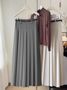 垂感西装百褶裙女夏季2025新款高腰遮胯休闲长款a字百褶裙长裙