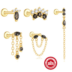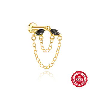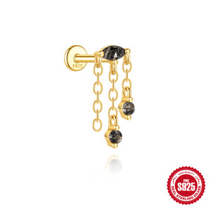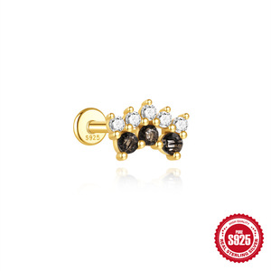 S925纯银几何马眼天然石黑发晶平头螺纹穿刺耳骨钉欧美热销首饰品