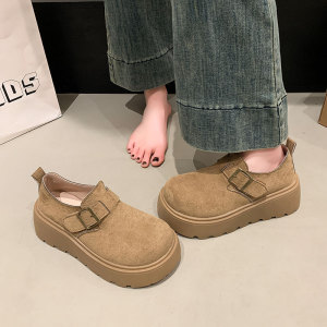 厚底增高勃肯鞋女鞋子2025新款春秋季小个子乐福鞋丑萌一脚蹬单鞋