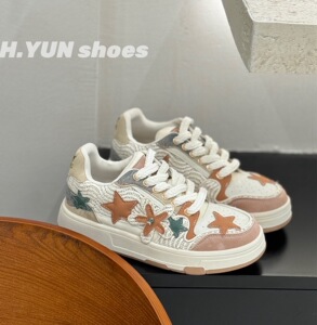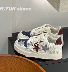 红韵~竹编真皮网面休闲星星国潮板鞋iins韩系百搭