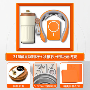 【橙色三件套】咖啡杯+颈椎仪+无线充电宝