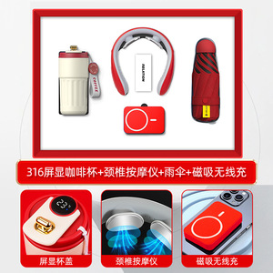 【红色四件套】咖啡杯+颈椎仪+无线充电宝+雨伞
