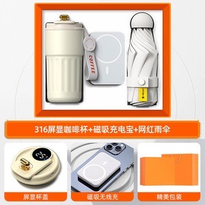 【橙色三件套】咖啡杯+无线充电宝+雨伞