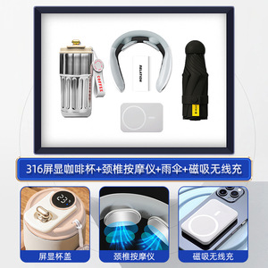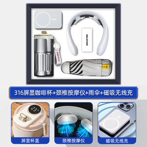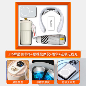 【灰色四件套】咖啡杯+颈椎仪+无线充电宝+雨伞