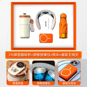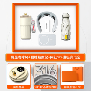 【橙色四件套】咖啡杯+颈椎仪+无线充电宝+雨伞
