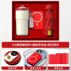 【红色三件套】咖啡杯+无线充电宝+雨伞