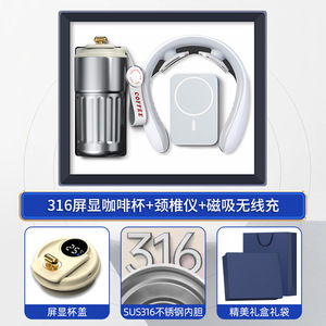 【灰色三件套】咖啡杯+颈椎仪+无线充电宝