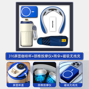 【蓝色四件套】咖啡杯+颈椎仪+无线充电宝+雨伞