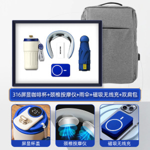 【蓝色五件套】咖啡杯+颈椎仪+雨伞+无线充电宝+双肩包