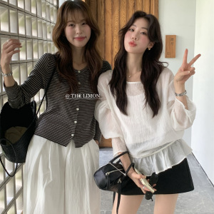 the limon柠檬绿茶2025秋季新款法式荷叶边系带衬衫娃娃衫上衣女