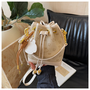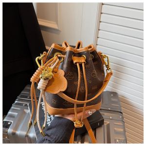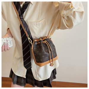 2025印花拼色维港邂逅水桶包包女士百搭高档手提包洋气单肩斜挎包