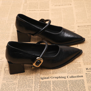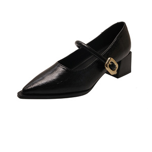 2025年春秋新款法式配裙子粗跟晚晚鞋气质中高跟尖头单鞋女鞋子