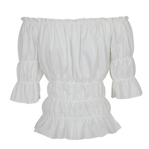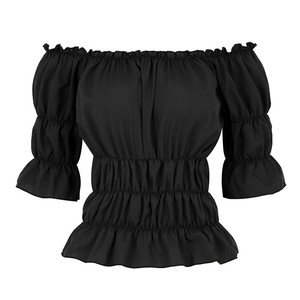 欧美哥特中世纪复兴女士短袖一字肩套头衬衫 外贸货源 工厂批发