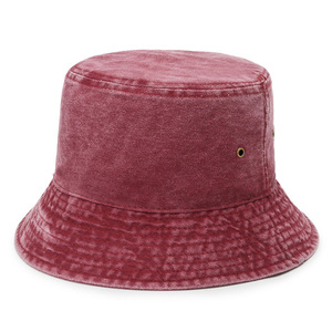 C35#水洗牛仔盆帽-酒红色