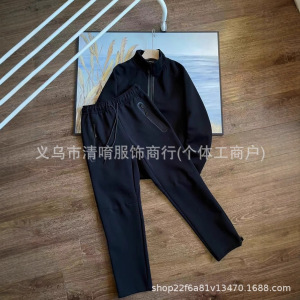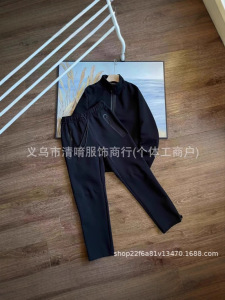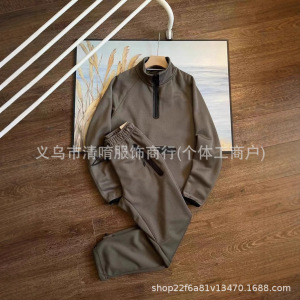 勾子半拉链宽松运动立领套头男女卫衣卫裤套头针织休闲套装DQ4312
