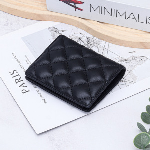 羊皮短款小钱包女士新款时尚绣花菱格对折钱夹真皮多功能零钱包女