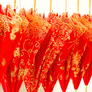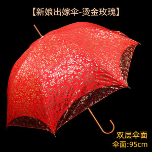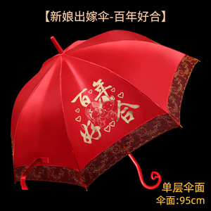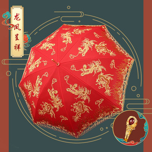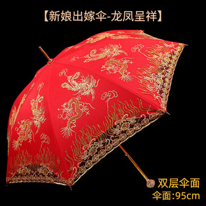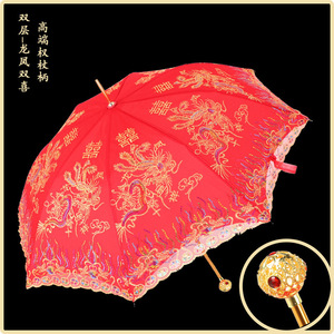 红伞婚庆结婚出嫁伞蕾丝花边刺绣中式婚礼长柄雨伞复古婚伞新娘伞
