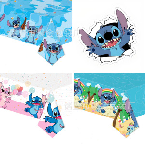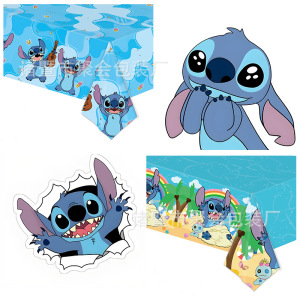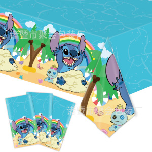 现货史迪奇派对用品万圣节史迪仔一次性桌布pe黄色生日布置装饰品