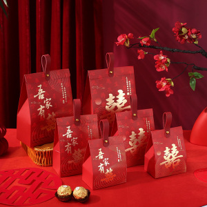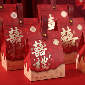 新中式结婚婚礼喜糖盒子手提订婚包装盒空盒回礼装喜糖的盒子批发