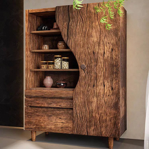 侘寂风实木餐边柜中古风茶室民宿酒水柜边柜风化老榆木茶水柜