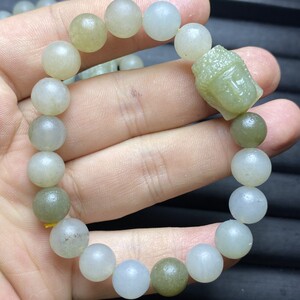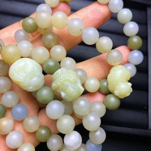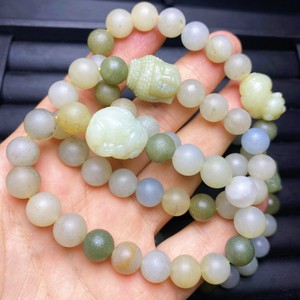天然新疆和田玉籽料原矿手串磨砂面玉石饰品和田玉手链水晶搭配
