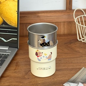 自制可爱腊肠小狗漱口杯高颜值卡通情侣家用牙刷杯不锈钢牙杯牙具