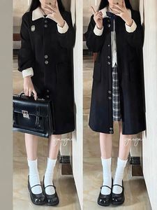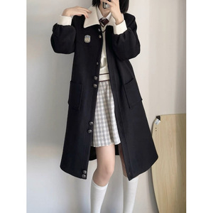 学院风呢子外套女年秋冬新款高级感气质中长款毛呢上衣杏色