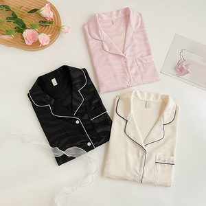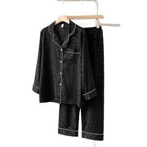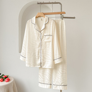 2025新款冰雪丝睡衣女长袖长裤提花夏季薄款宽松可外穿家居服套装