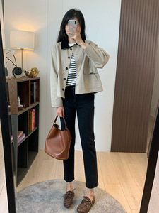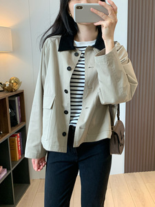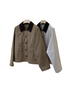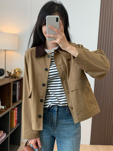 复古巴恩风~秋 灯芯绒拼接领高密斜纹棉夹克长袖短款风衣G072910