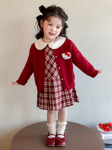 女童连衣裙秋装2025新款洋气儿童针织开衫公主裙宝宝周岁礼服春秋