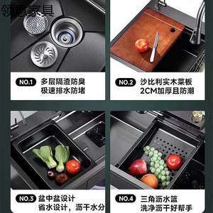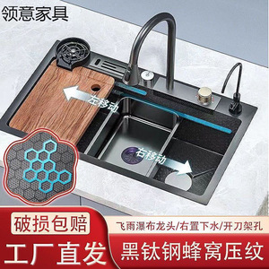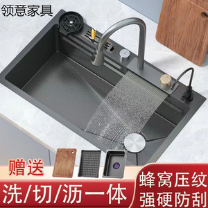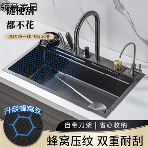 4MM飞雨瀑布304不锈钢水槽大单槽家用蜂窝台下盆厨房洗碗盆洗菜盆