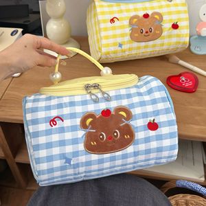 可爱小熊格纹化妆包大容量立体手提化妆收纳包便携外出旅行洗漱包