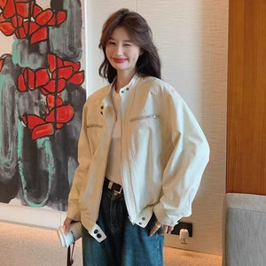 双层有里布 美式立领工装外套女春秋跨境新款宽松百搭休闲夹克衫