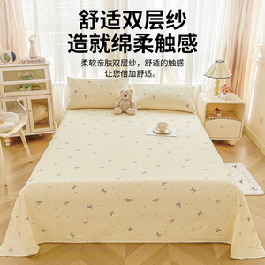 款双层纱床单单件夏季学生宿舍单人被单枕套三件套水洗棉床单