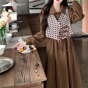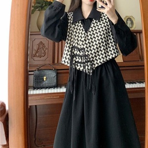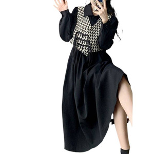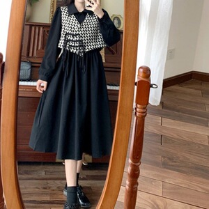 大码连衣裙早秋季新款胖mm遮肚子裙子马甲两件套装女遮肉显瘦长裙