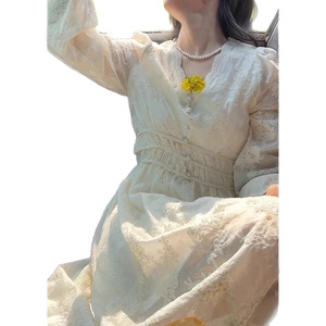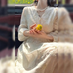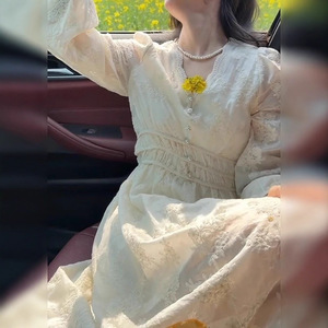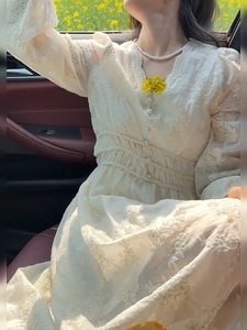 秋季新款防晒薄款长袖收腰连衣裙高级气质蕾丝长裙裙子显瘦遮肚子