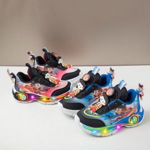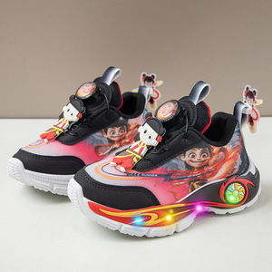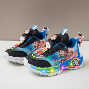 男童运动鞋2025秋季新款儿童网面透气休闲鞋男孩旋转扣亮灯老爹鞋