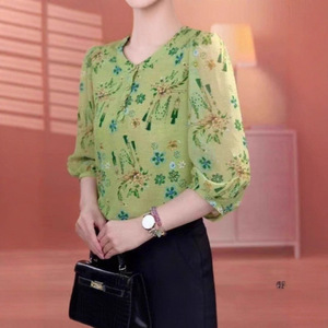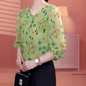 时尚休闲洋气七分袖衬衫女夏季新款气质小衫减龄宽松显瘦印花上衣