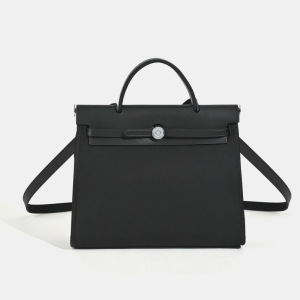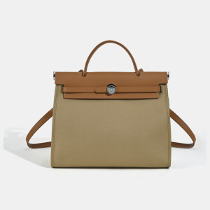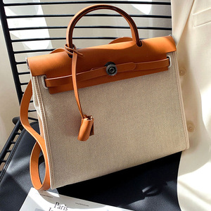 纯手工herbag凯莉包牛皮帆布拼色设计大容量通勤单肩斜挎包手提包
