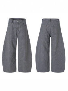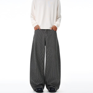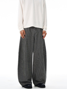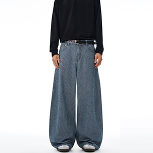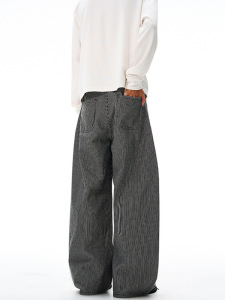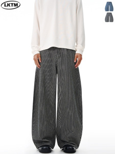 LKTM男装 秋冬新款简约条纹弯刀牛仔裤男女高级感慵懒风垂感长裤