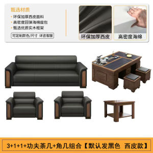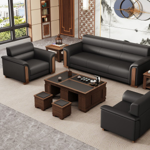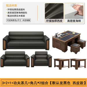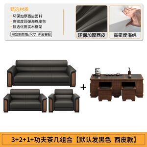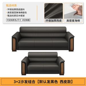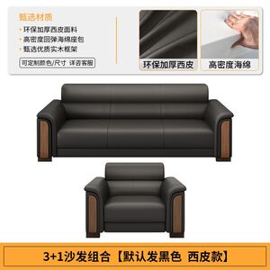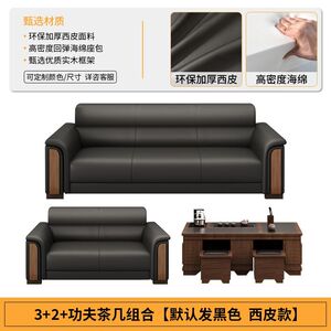 办公沙发简约商务接待洽谈休息区会客办公室三人真皮茶几组合套装