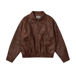 男士皮衣欧美潮流朋克小众宽松机车服夹克做旧春秋翻领PU皮外套