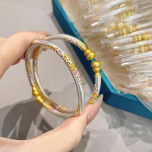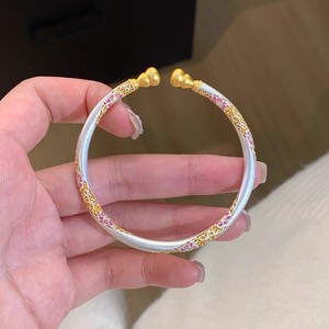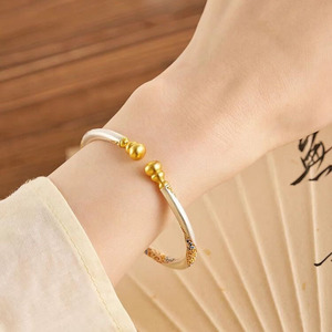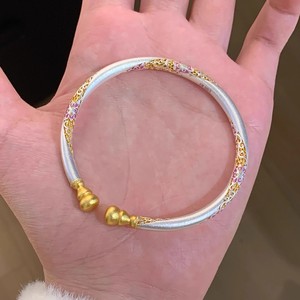 描金珐琅彩繁花葫芦手镯女实心开口轻奢素圈古法镀银手环镯子复古